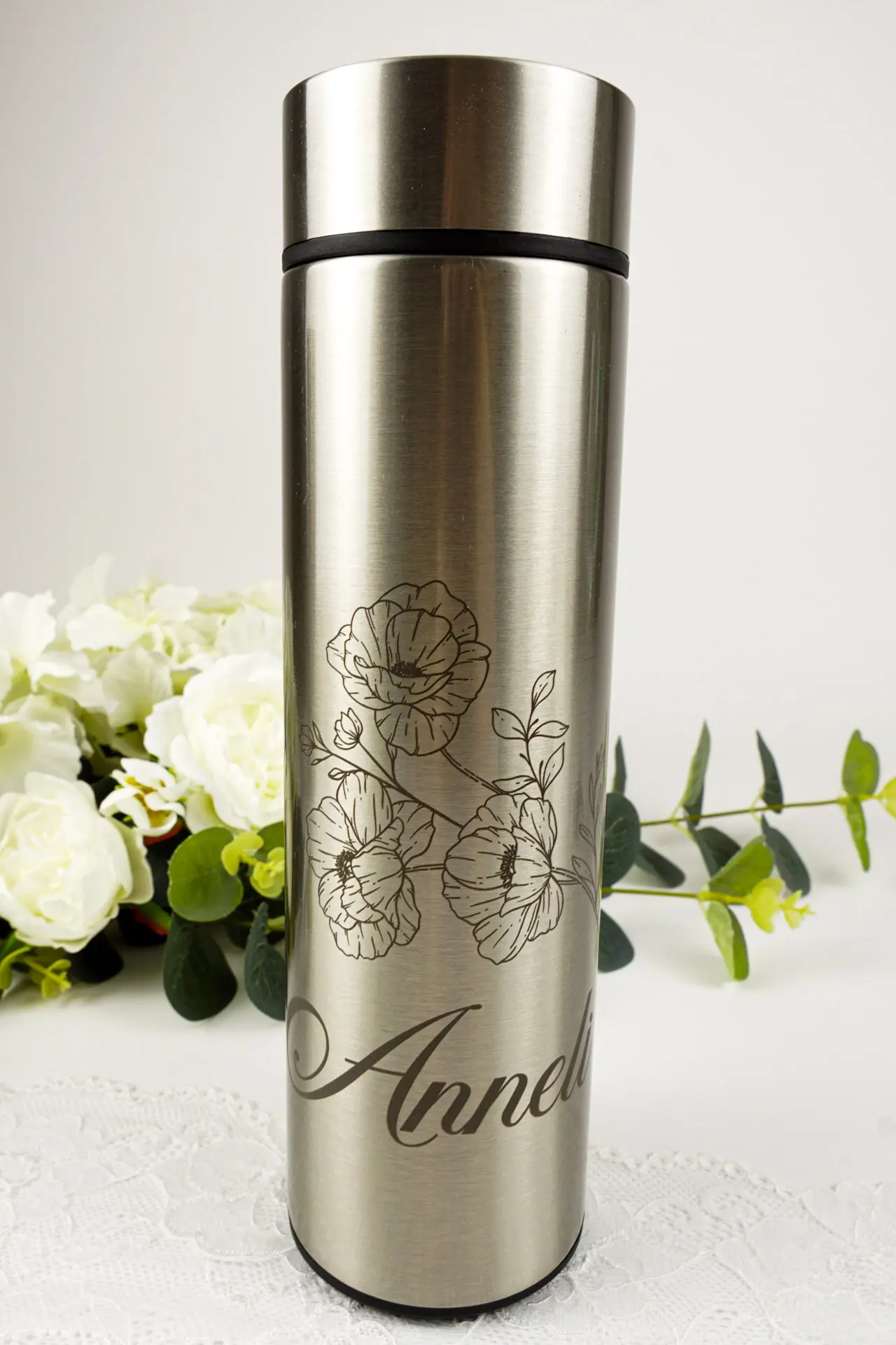 Termospudel on hea kaaslane igapäevastes olukordades – tööle minnes, autosõidul, koolis või matkadel. Roostevaba teras hoiab joogi temperatuuri kaua ning graveering lisab sellele päris oma tähenduse. Iga pudel valmib ühekaupa ning just sellise kujundusega, nagu kingisaaja või tellija soovib.
